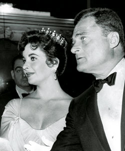 By the premiere of Giant, Elizabeth is with movie producer Mike Todd, a big broker on Broadway and in Hollywood, mostly known for producing and expertly promoting Around the World in 80 Days and developing a wide screen projection called Todd AO.Todd teaches Taylor how to be a cut-throat negotiator. He begins her love affair with expensive jewelry and he can keep up with her love of drama. Elizabeth Taylor will forever list him as one of the loves of her life.