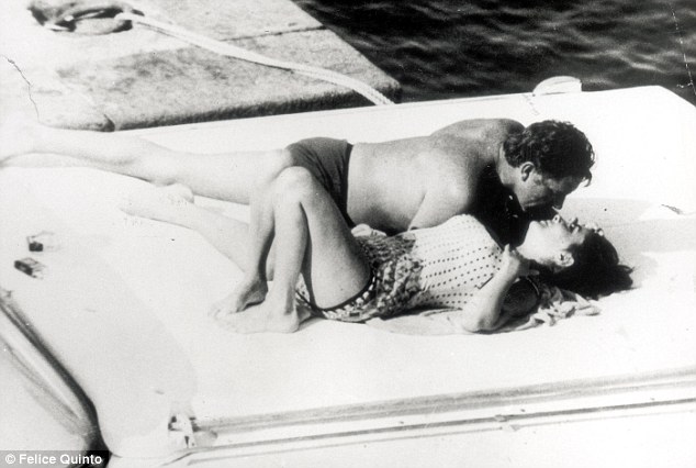 However, Richard Burton is unimpressed with Elizabeth Taylor their first few meetings. She seemed a very removed celebrity, he thought. Likewise, Elizabeth Taylor is determined not to be another notch on Richard Burton's belt. But soon the rumors begin. Federico Fellini had just coined the word paparazzi (which sounded like a buzzing insect to him) in his 1960 film La Dolce Vita and the term sticks after the hoards of photographers stalk the set of Cleopatra looking for picture of an illicit affair between Elizabeth Taylor and Richard Burton. Rumors of their affair leak all over the world causing troubles for each of them at home with their respective spouses. The affair also slows down filming even more. Liz & Dick became a media frenzy. The paparazzi finally snare photos of the couple lovemaking in hidden places. This famous photograph confirms the story.